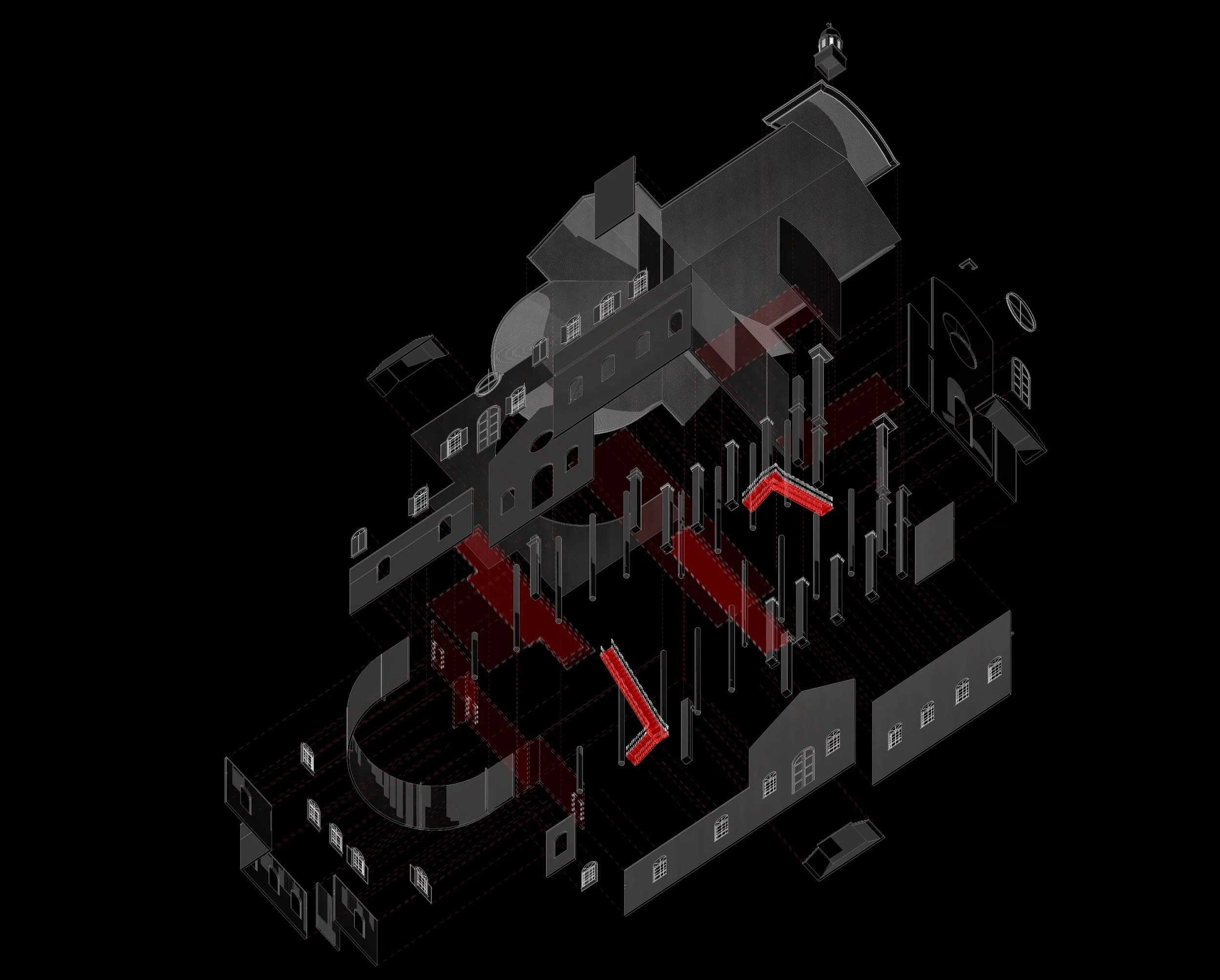 Focusing on the representation of ‘other’ histories on the island, this Ministry takes the form of two programmatically “bleeding” buildings in what used to be the School and Chapel of Immaculate Conception. Both buildings are situated on the same site. In the historical slave legacy of ‘le code noir’ it is stated that “any child born to an enslaved woman is born into slavery, regardless of the ancestry or citizenship of the father”. The project seeks to unearth these and other unheimlich histories - suppressed and largely invisible narratives and to find representation for them in architectural and built form.