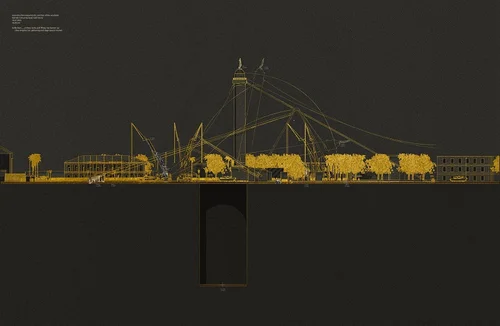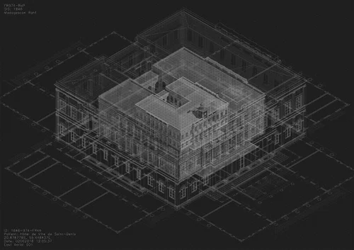 The archaeological dig transposes a major French artefact, the Elysee Palace onto Saint-Denis’ Town Hall. Using the language aquired in Act III (copy/paste; stich, fold, pleat), the new Metro is copied from the original onto the land.