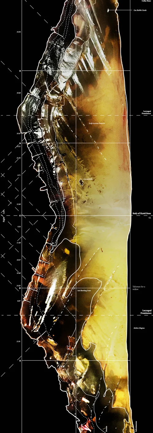 One example of the hybrid nature of earth and epidermis is evident through the control of movement in which exclusionary notions of race determine where and how bodies can migrate. The history of the world is intrinsically tied to the history of movement; from the earliest hunter-gatherer nomadic groupings, slavery and colonisation, and current migration movements. The global political impetus to maintain and define boundaries is more pressing, intensive and contested than ever . At no time in human history has move-ment been more strictly and, increasingly, violently controlled, including on racial grounds. Architecturally, the nomad is a construct which “undoes” architecture. Architecture’s mandate seeks to solidify and impose identity and place, while the nomad resists notions of home and identity that are tied to fixed place. For the nomad, notions of territory and identity are more linked to ritual, language, traditions and cultural practice. One such example is the Tan-Tan Moussem, an annual gathering of more than twenty nomadic tribes from Northwest Africa; and parts of the Middle East, including Saudi Arabia . My Book of Skins draws on the Tan-Tan Moussem and other ritual and cultural practices related to the identity of nomadic tribes, as a proxy for overlapping, clashing and interweaving ethnicities, identities, politics and geographies of various political-ly contested and opposed regions. It takes inspiration from these contradictions and complexities to develop new architectural skins, which express and counter the arbitrary nature of imposed legal political bounda-ries. These skins speculate on an alternative political future and a new set of relations between regions, where relationships, borders, and territories allow for permeability, build on long-standing histories and can exist in a productive state of tension.